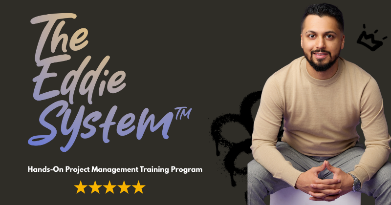 I’m Eddie. I’m a Project Manager in IT/Tech with experience managing million-dollar projects for Fortune 500 companies. I’m also the creator and operator of The Eddie System – a comprehensive, step-by-step program that prepares you to launch a new career in project management or transition to a project management role.