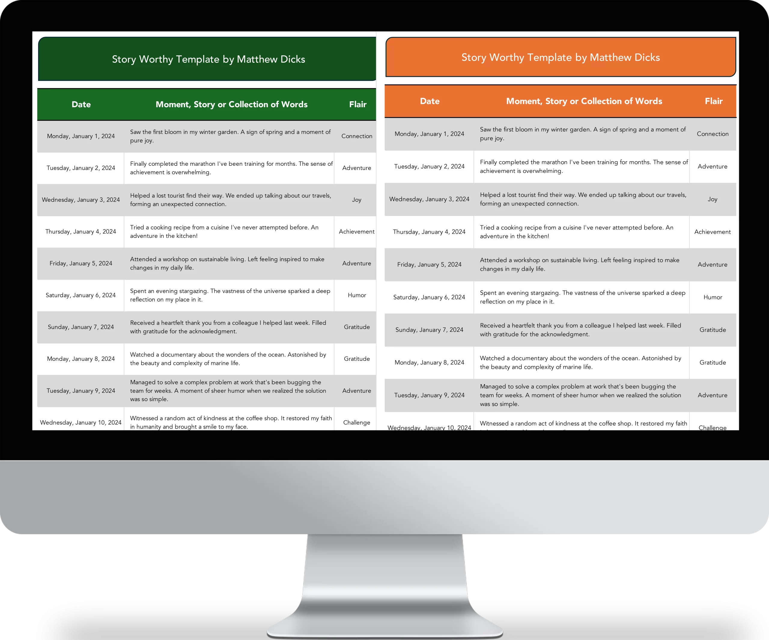 - The Story Worthy Template by Matthew Dicks [Excel File in English]