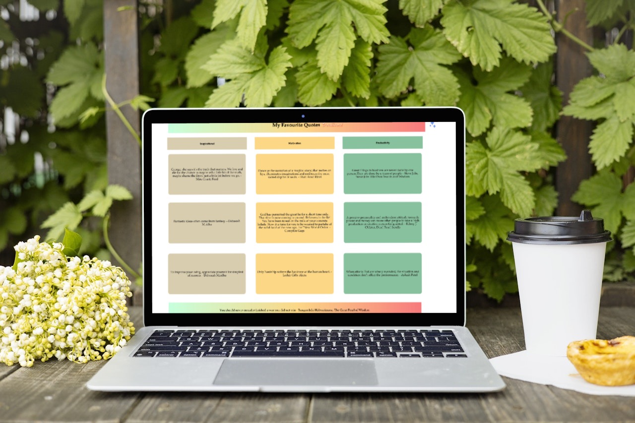 My Favourite Quotes Tracker transforms quote management into an enriching and motivating experience, perfect for those seeking daily inspiration.