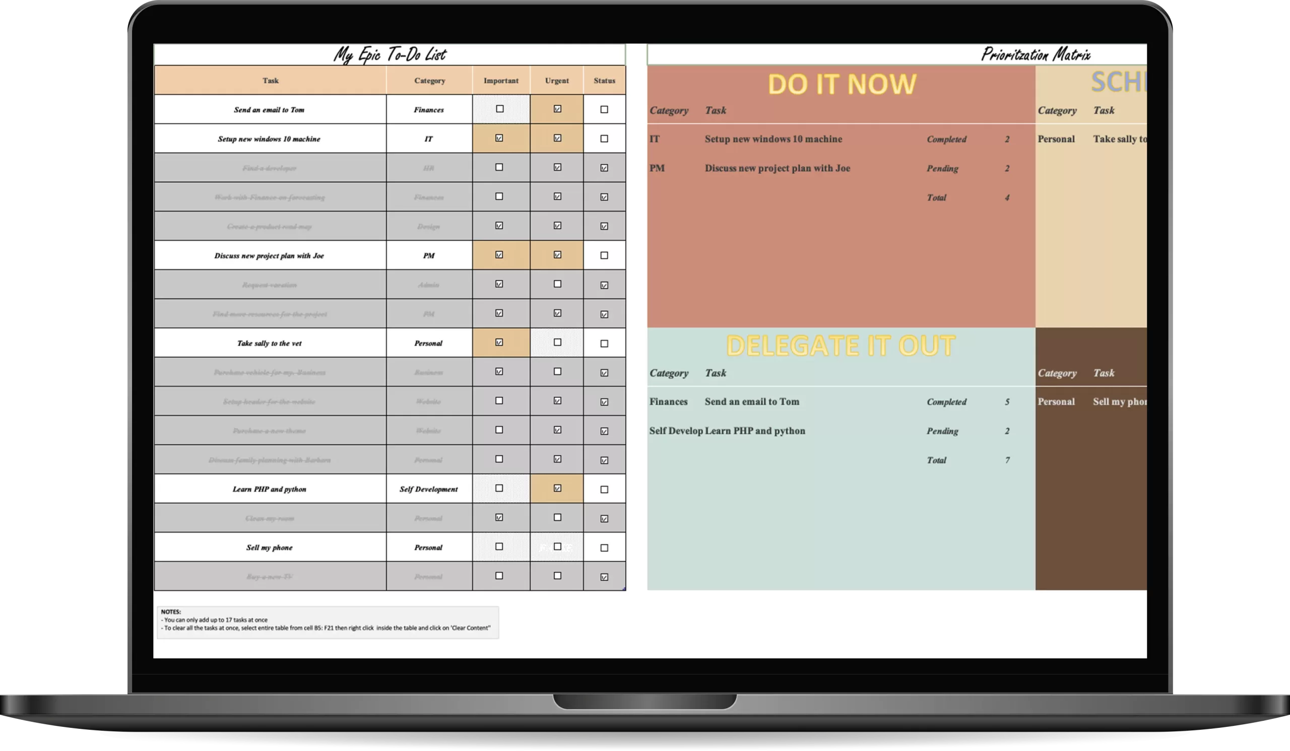 5. Customization: Tailor the template to your unique needs, adding or modifying categories as needed to fit your specific goals and projects.